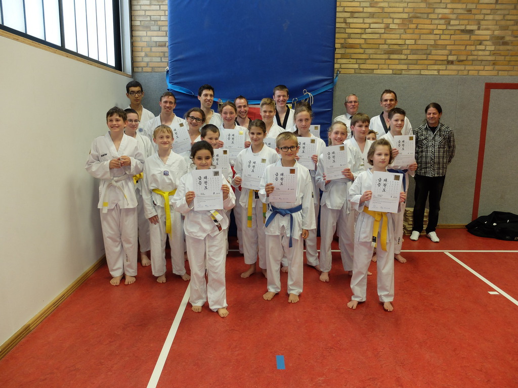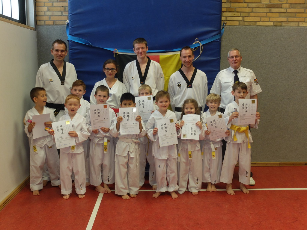 Angefangen haben wir mit unseren Minis (5 bis 8 Jahre), die mit Spaß und Freude eine tolle Prüfung absolviert haben. Alle 10 Kinder haben natürlich bestanden. Sie sind jetzt noch motivierter als zuvor zu trainieren, um die nächste Gurtstufe zu erreichen.